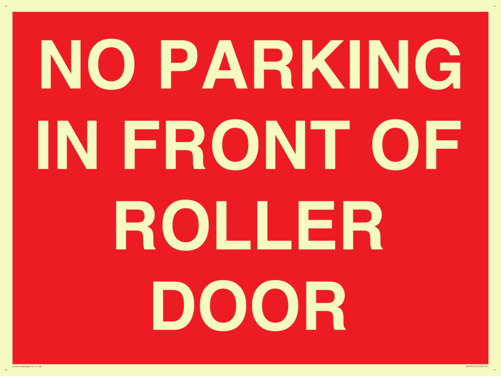 Sign Text: NO PARKING IN FRONT OF ROLLER DOOR