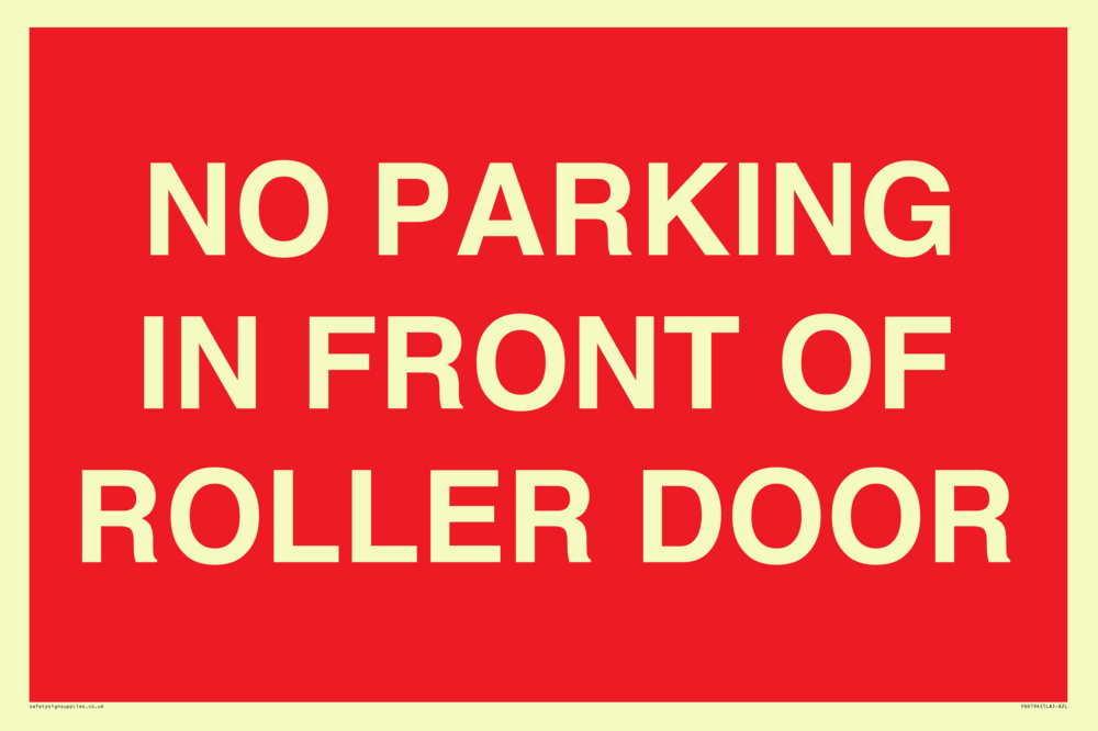 Sign Text: NO PARKING IN FRONT OF ROLLER DOOR
