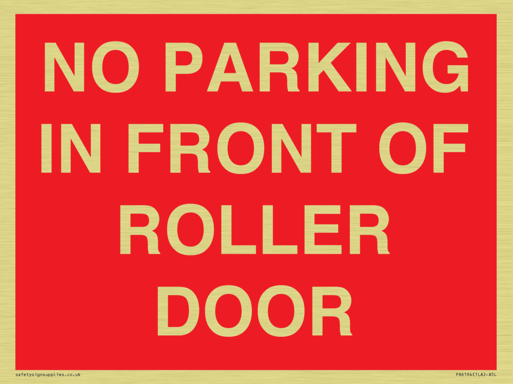 Sign Text: NO PARKING IN FRONT OF ROLLER DOOR