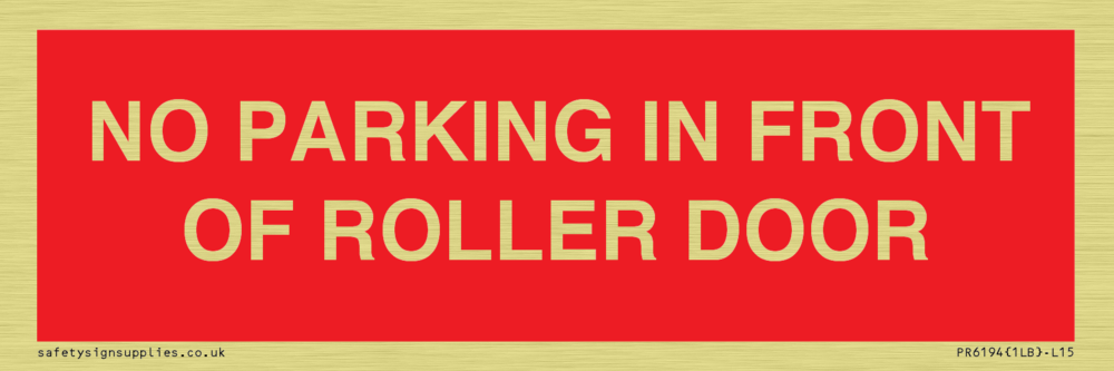 Sign Text: NO PARKING IN FRONT OF ROLLER DOOR