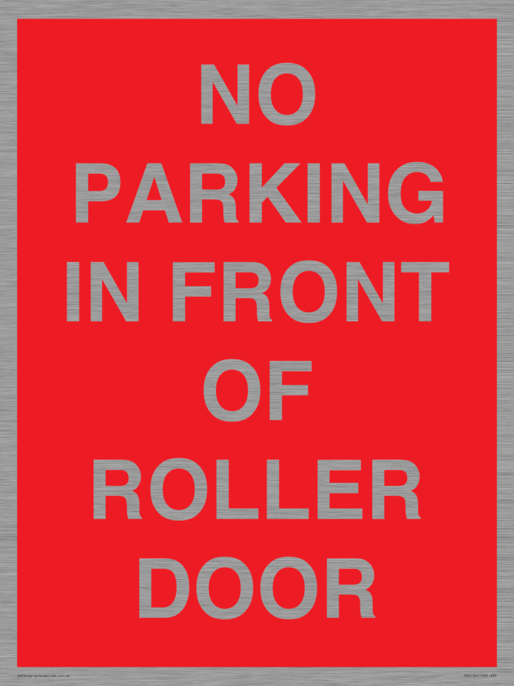 Sign Text: NO PARKING IN FRONT OF ROLLER DOOR