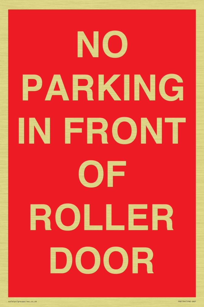 Sign Text: NO PARKING IN FRONT OF ROLLER DOOR