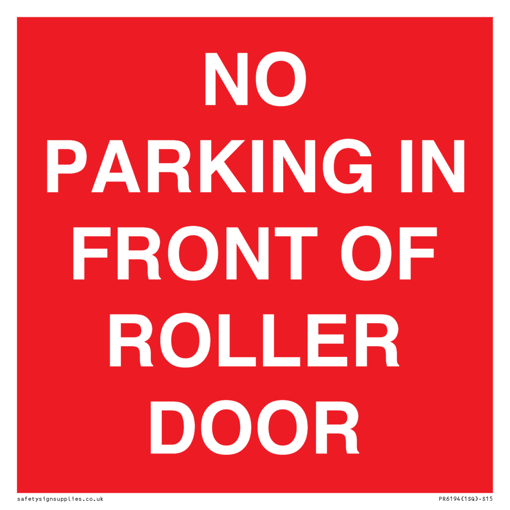 Sign Text: NO PARKING IN FRONT OF ROLLER DOOR