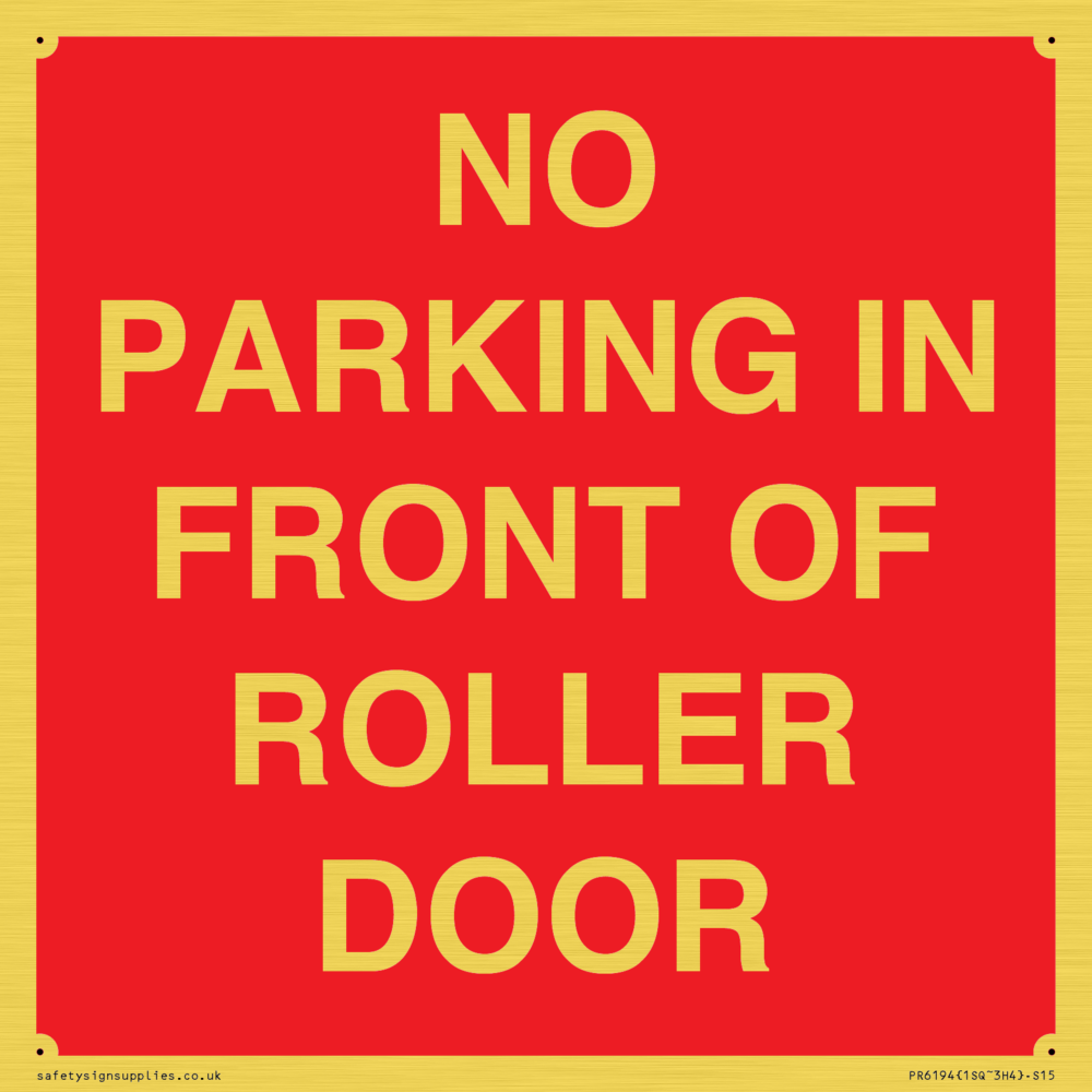 Sign Text: NO PARKING IN FRONT OF ROLLER DOOR