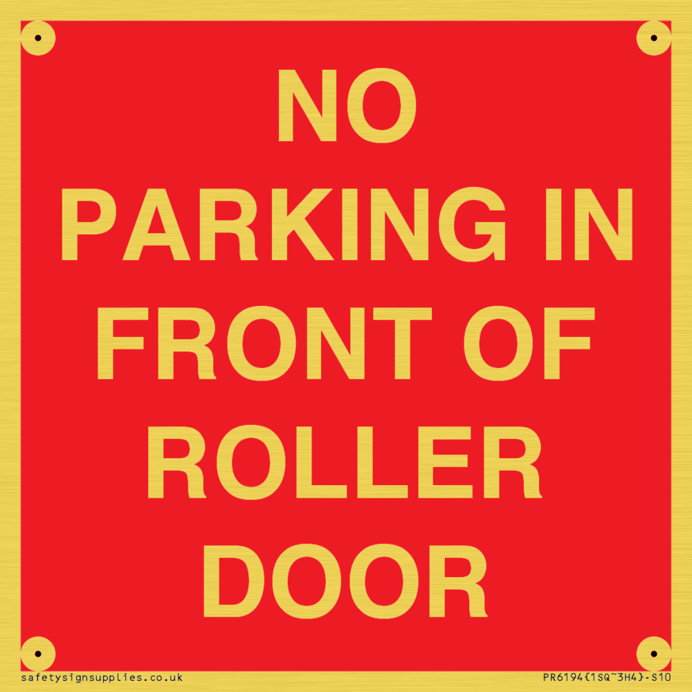 Sign Text: NO PARKING IN FRONT OF ROLLER DOOR