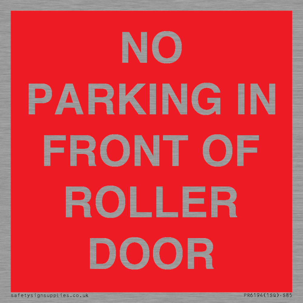 Sign Text: NO PARKING IN FRONT OF ROLLER DOOR