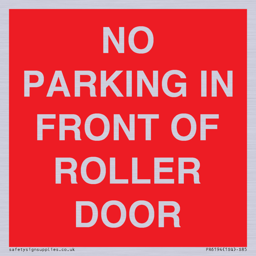 NO PARKING IN FRONT OF ROLLER DOOR Sign