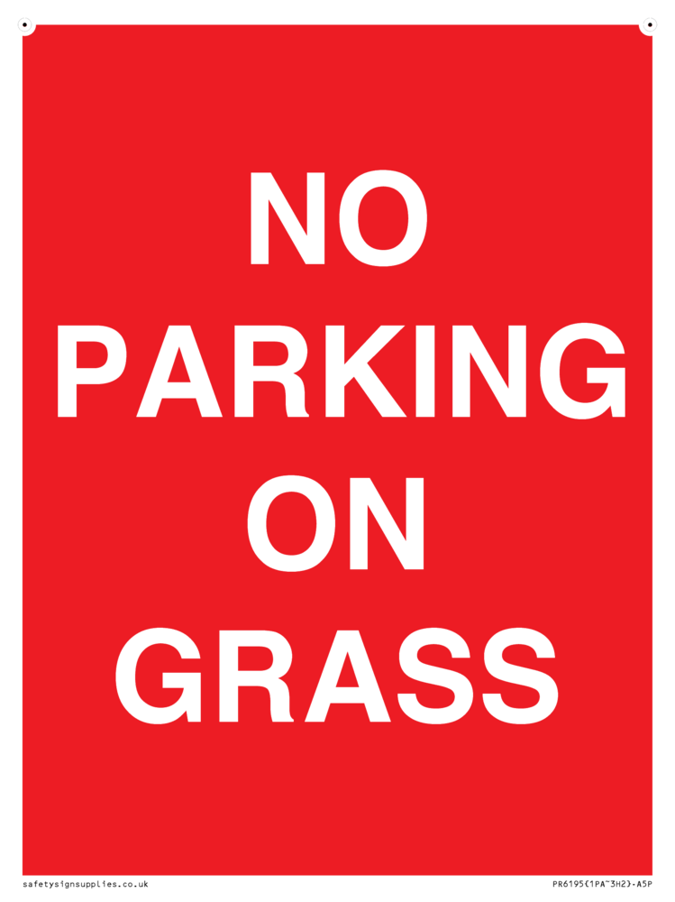 Sign Text: NO PARKING ON GRASS