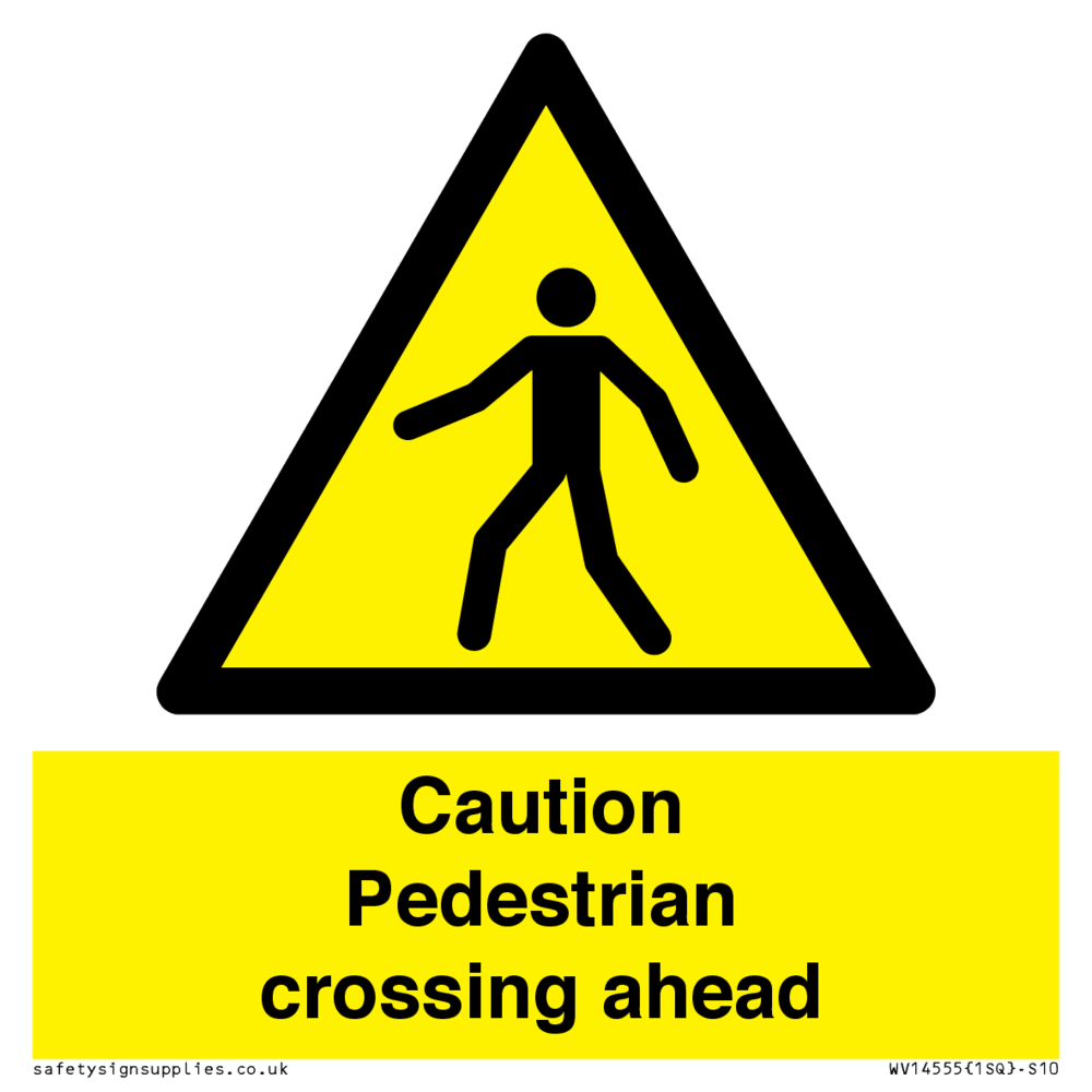 Sign Text: Caution Pedestrian crossing ahead
