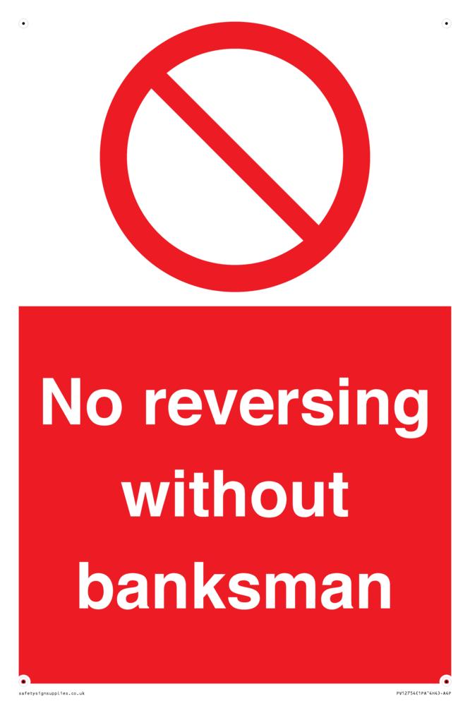 Sign Text: No reversing without banksman