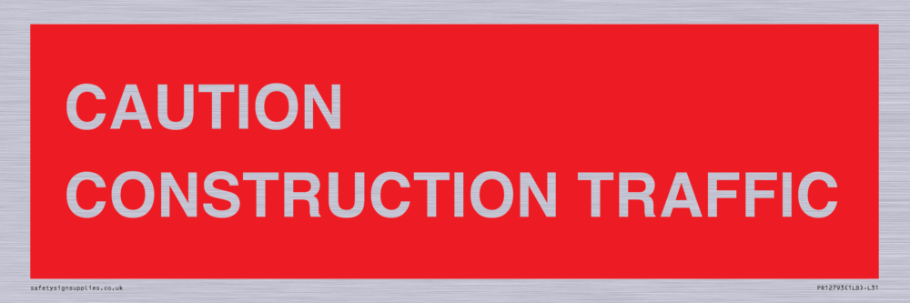 CONSTRUCTION TRAFFIC Product Type: Prohibition Safety Signs Dimensions: 300x100mm Material: Brushed silver aluminum with 1 channel add X50CLIP1 to your basket for fixing Text Colour: White Background Colour: Red More...