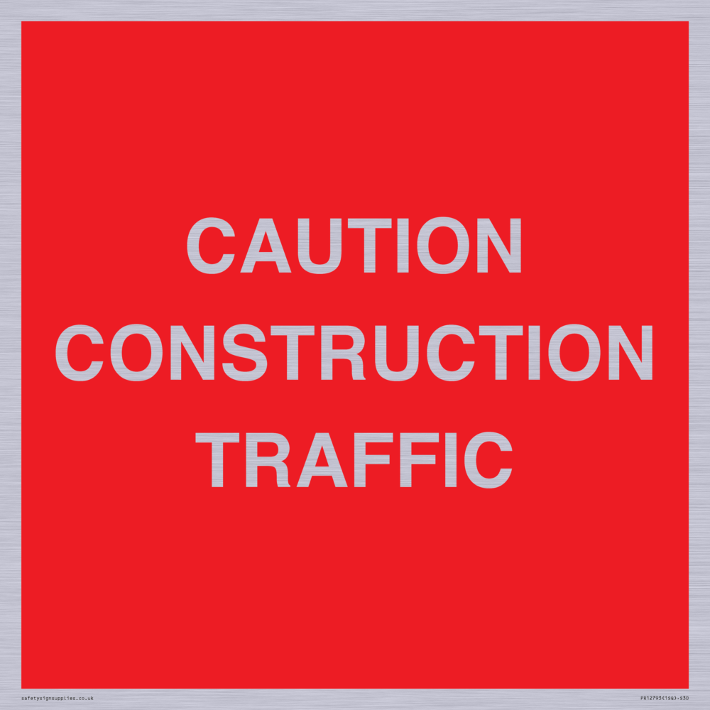 CONSTRUCTION TRAFFIC Product Type: Prohibition Safety Signs Dimensions: 300x300mm Material: Brushed silver aluminum with 2 channel Orientation: Square Text Colour: White More...