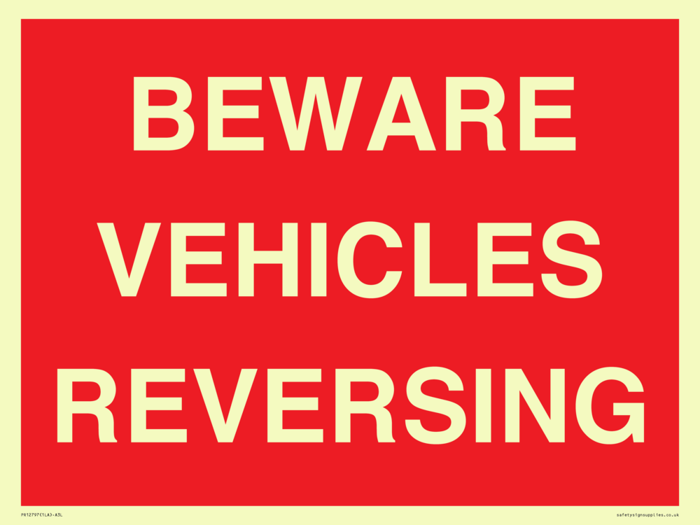 Sign Text: BEWARE VEHICLES REVERSING
