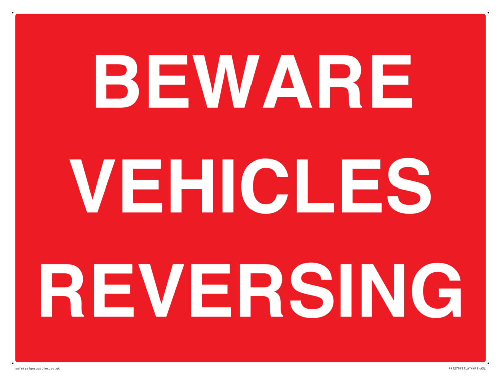 Sign Text: BEWARE VEHICLES REVERSING