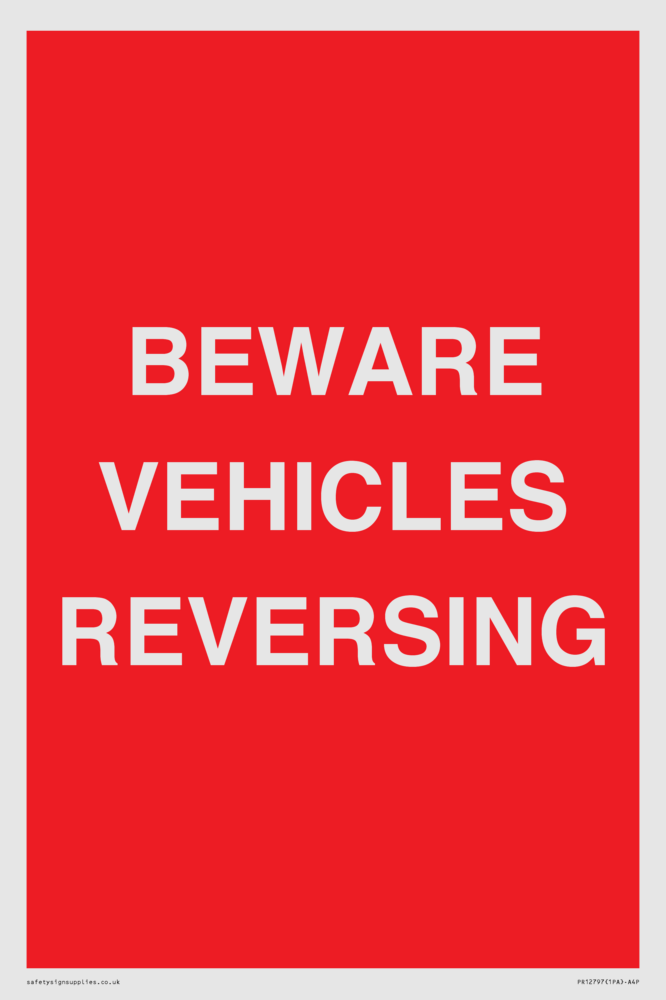 Sign Text: BEWARE VEHICLES REVERSING