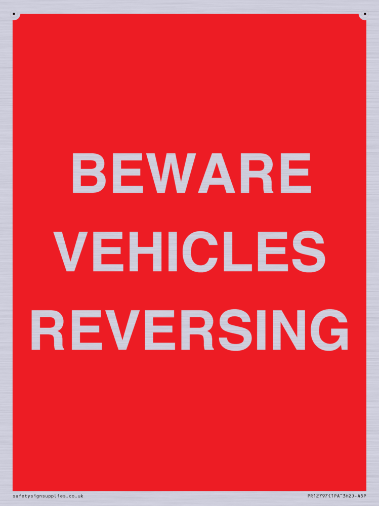 Sign Text: BEWARE VEHICLES REVERSING