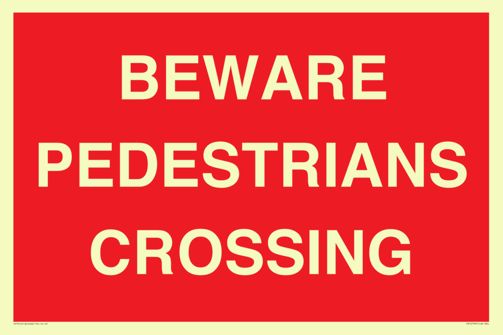 Sign Text: BEWARE PEDESTRIANS CROSSING