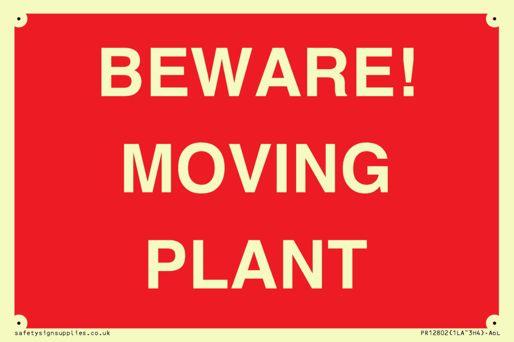 Sign Text: BEWARE! MOVING PLANT