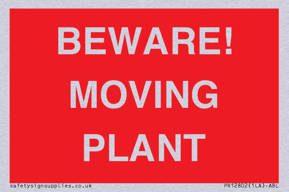 Sign Text: BEWARE! MOVING PLANT