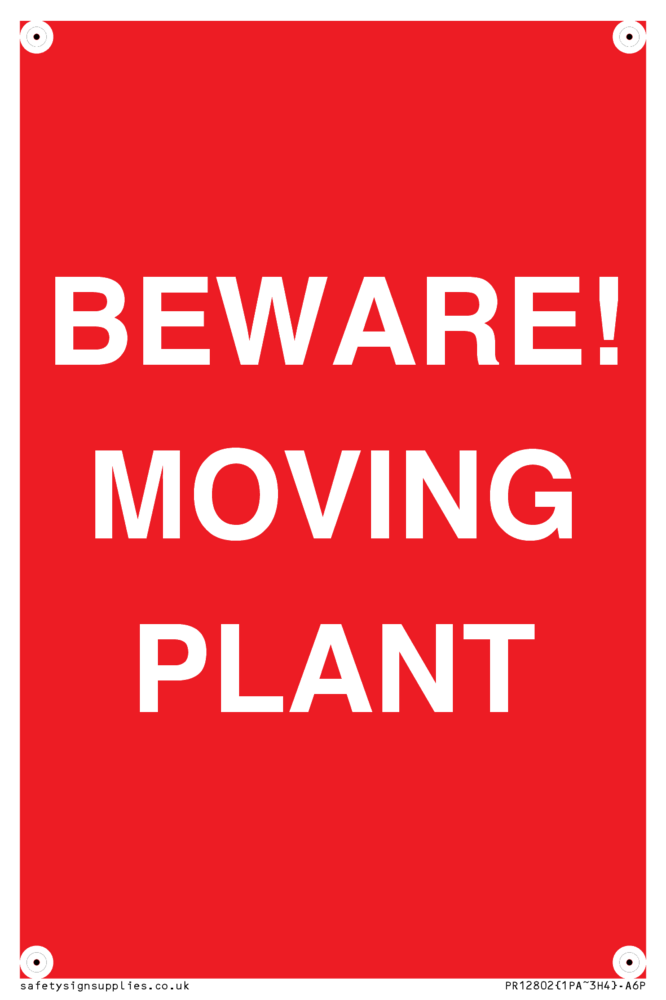 Sign Text: BEWARE! MOVING PLANT
