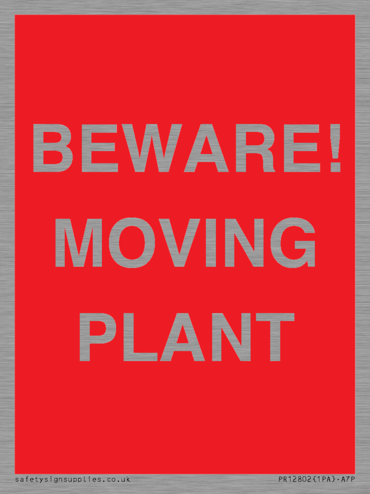 Sign Text: BEWARE! MOVING PLANT