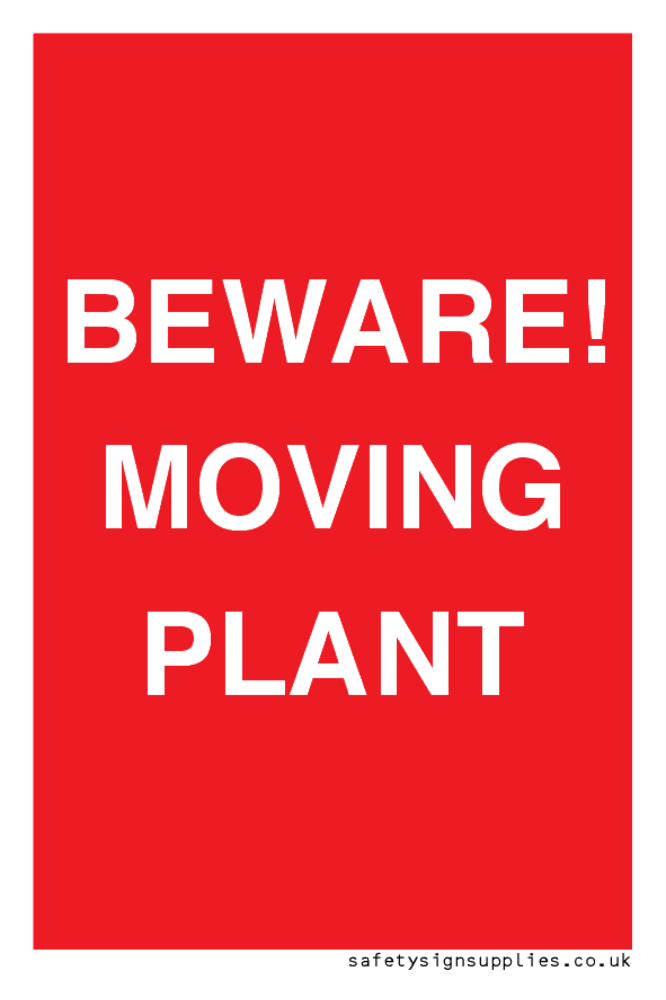 Sign Text: BEWARE! MOVING PLANT