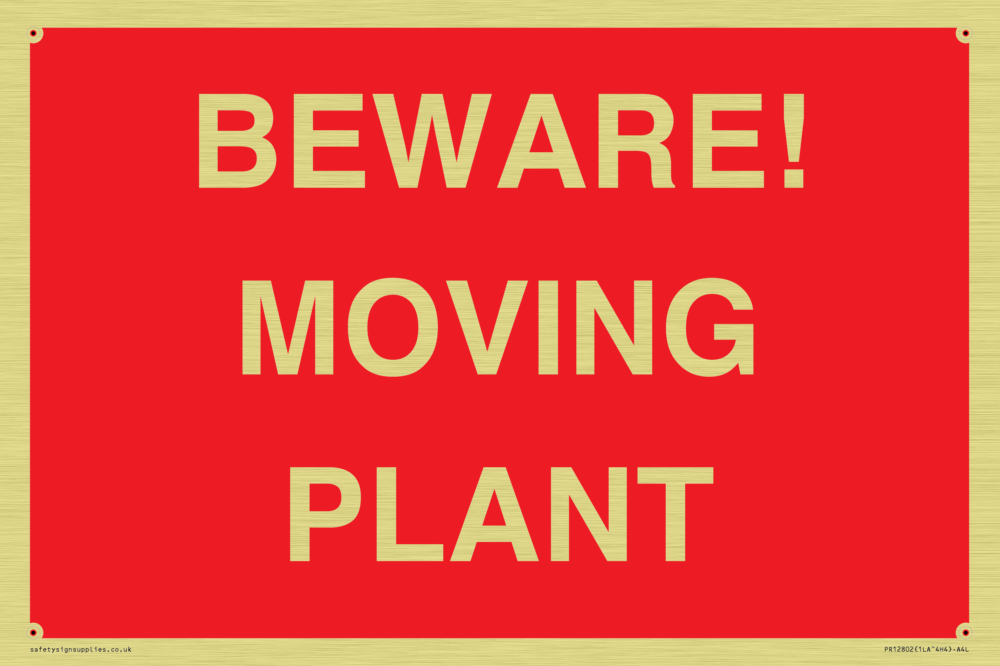 Sign Text: BEWARE! MOVING PLANT