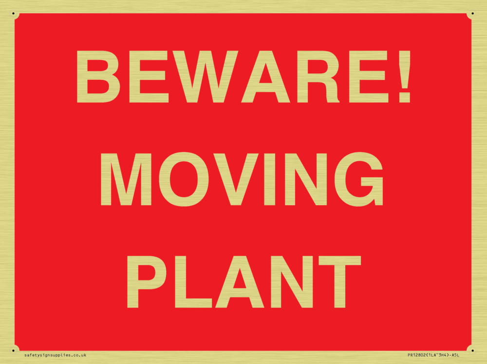 Sign Text: BEWARE! MOVING PLANT