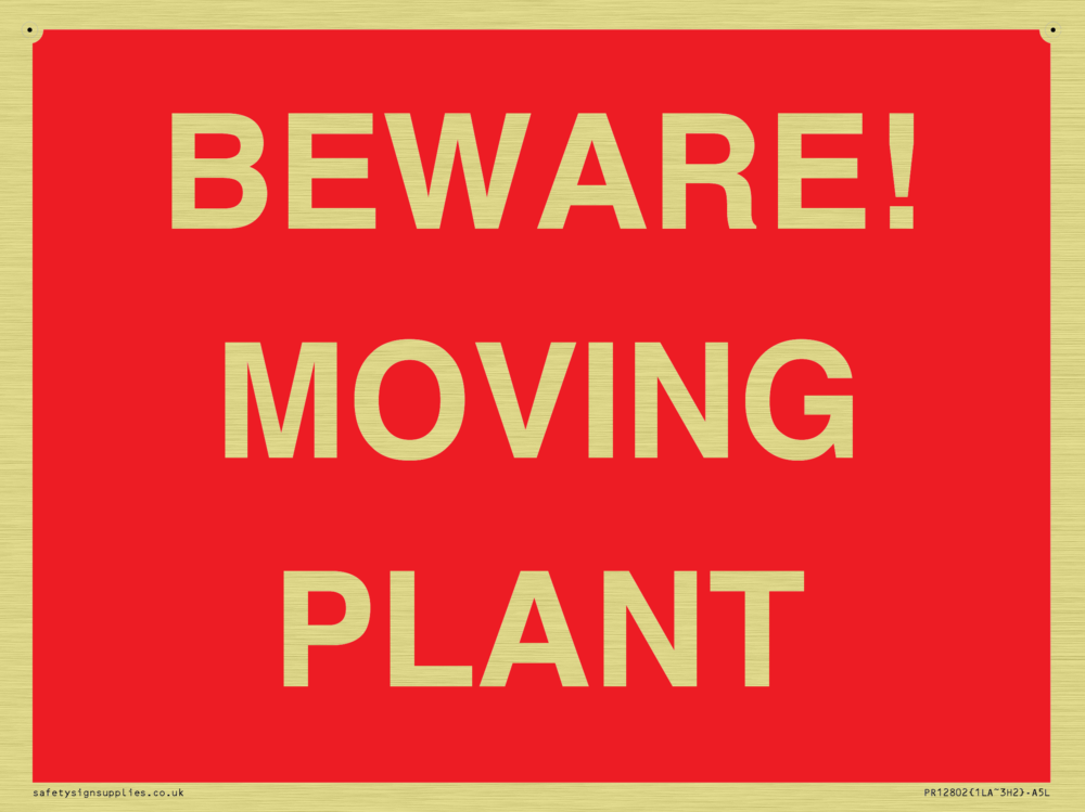 Sign Text: BEWARE! MOVING PLANT