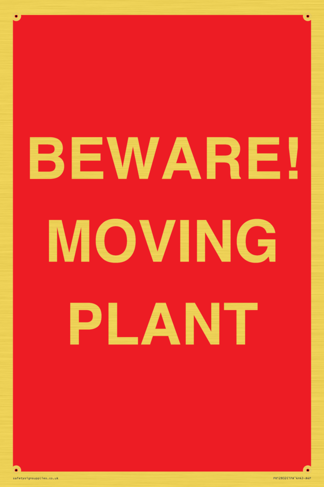 Sign Text: BEWARE! MOVING PLANT