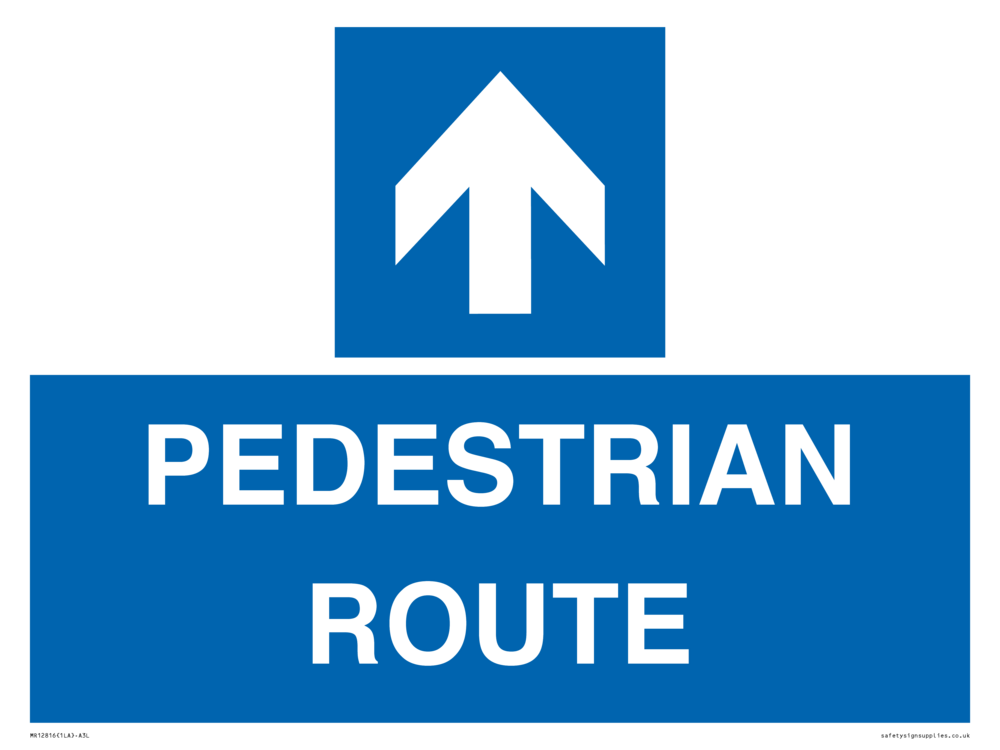 Sign Text: PEDESTRIAN ROUTE Dimensions: 400x300mm Material: Aluminum with 2 channels Orientation: Landscape Text Colour: White Background Colour: Blue More...