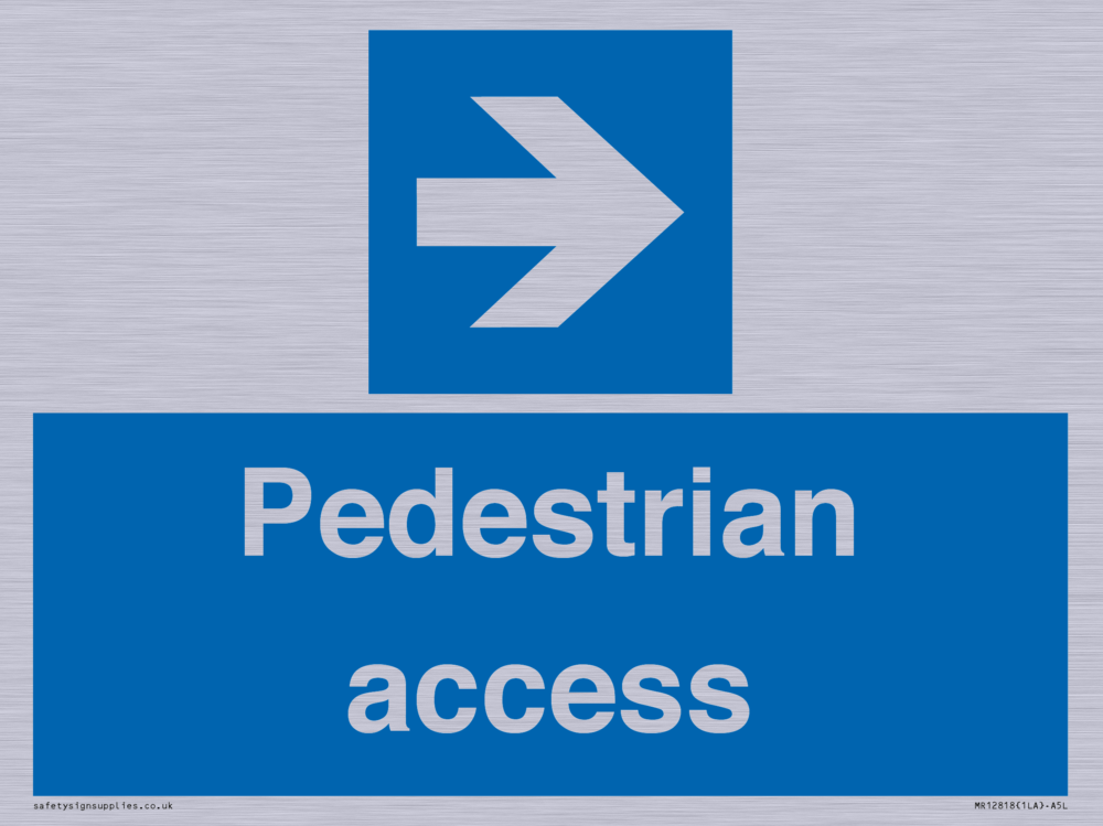 Sign Text: Pedestrian access Dimensions: 200x150mm Material: Brushed silver aluminum with 1 channel add X50CLIP1 to your basket for fixing Orientation: Landscape Text Colour: White Background Colour: Blue More...
