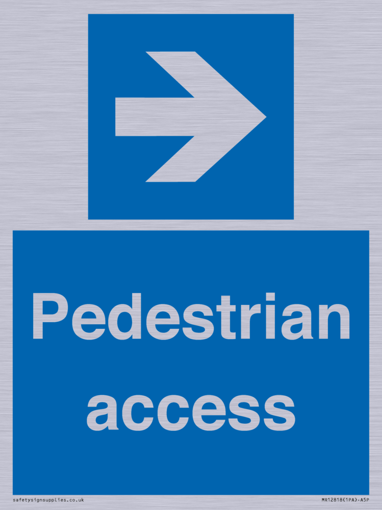 Sign Text: Pedestrian access Dimensions: 150x200mm Material: Brushed silver aluminum with 1 channel add X50CLIP1 to your basket for fixing Orientation: Portrait Text Colour: White Background Colour: Blue More...