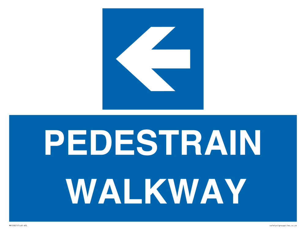 Sign Text: PEDESTRAIN WALKWAY Dimensions: 400x300mm Material: Aluminum with 2 channels Orientation: Landscape Text Colour: White Background Colour: Blue More...