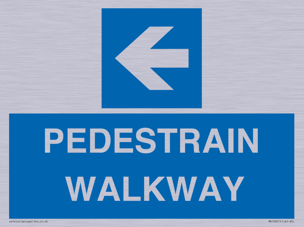 Sign Text: PEDESTRAIN WALKWAY Dimensions: 200x150mm Material: Brushed silver aluminum with 1 channel add X50CLIP1 to your basket for fixing Orientation: Landscape Text Colour: White Background Colour: Blue More...
