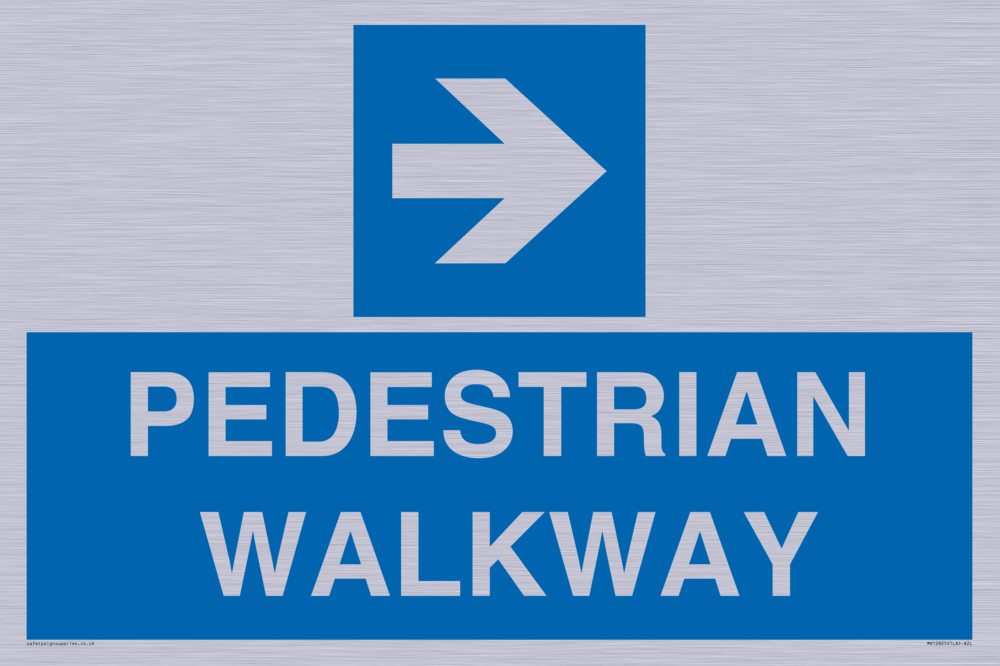 Sign Text: PEDESTRAIAN WALKWAY Dimensions: 600x400mm Material: Brushed silver aluminum with 2 channel Orientation: Landscape Text Colour: White Background Colour: Blue More...