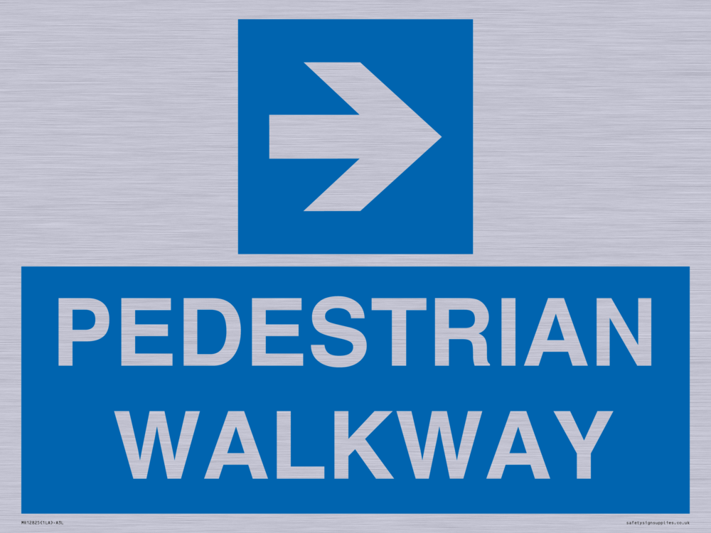 Sign Text: PEDESTRAIAN WALKWAY Dimensions: 400x300mm Material: Brushed silver aluminum with 2 channel Orientation: Landscape Text Colour: White Background Colour: Blue More...