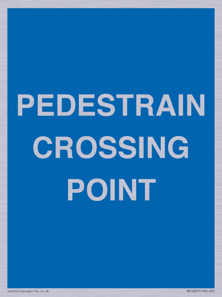 Sign Text: PEDESTRAIN CROSSING POINT Dimensions: 150x200mm Material: Brushed silver aluminum with 1 channel add X50CLIP1 to your basket for fixing Orientation: Portrait Text Colour: White Background Colour: Blue More...
