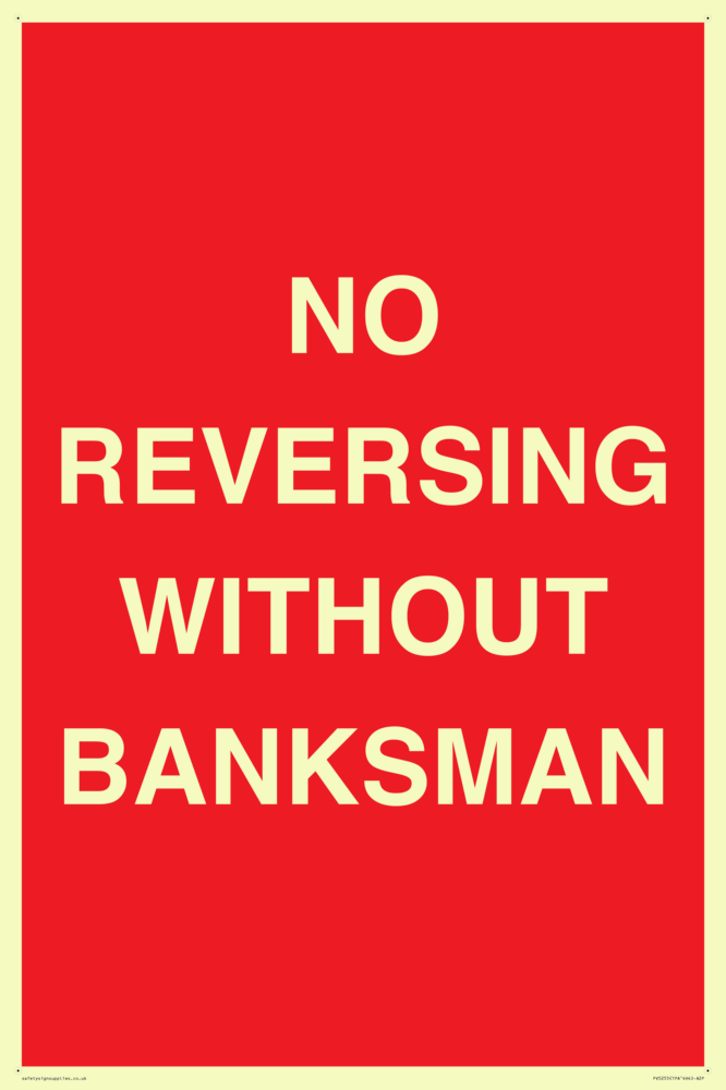 Sign Text: No reversing without banksman