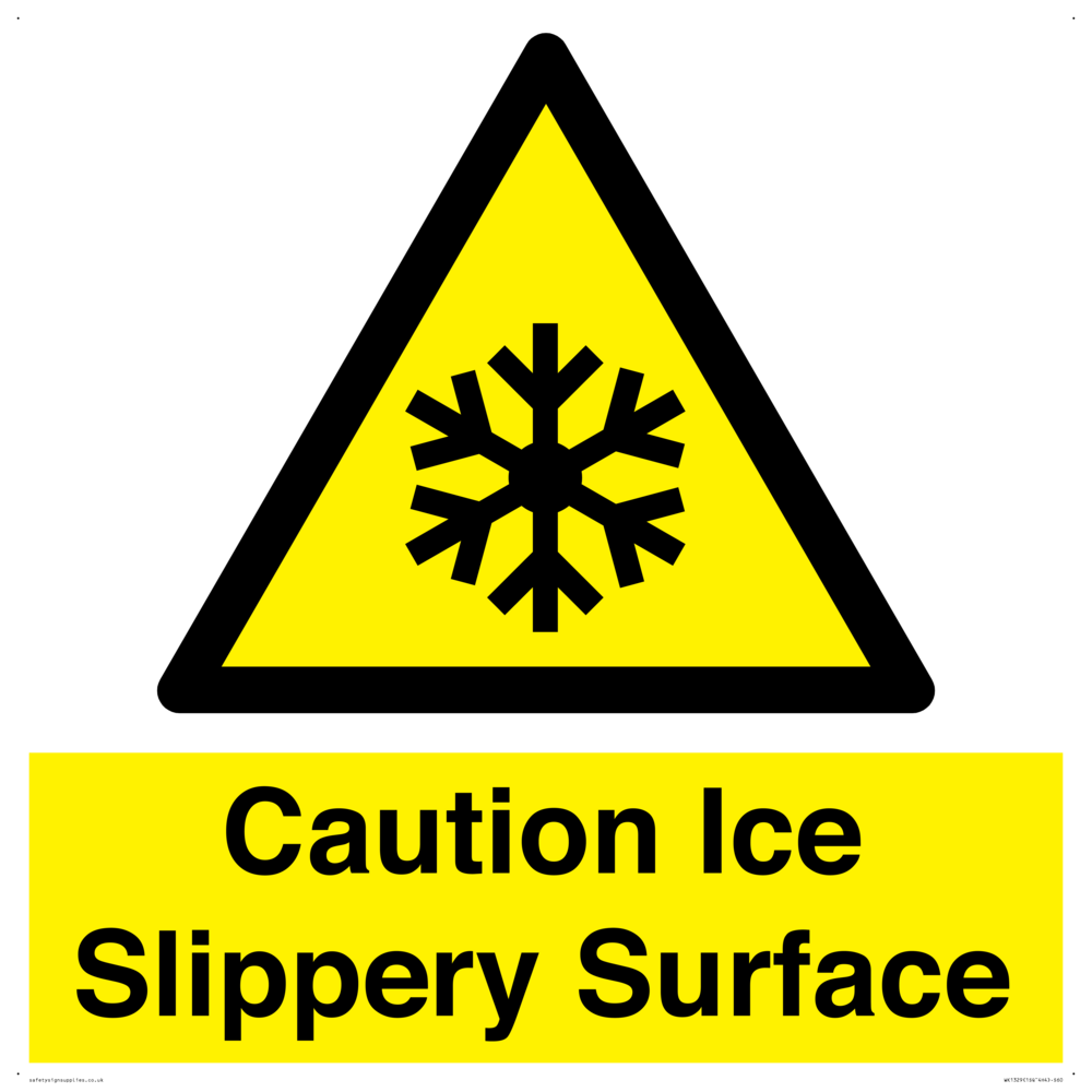 Sign Text: Caution Ice Slippery Surface