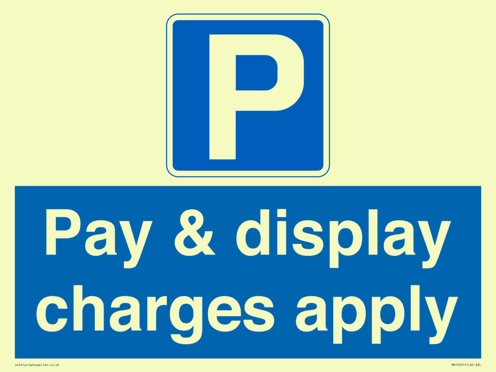 Pay & display charges apply Sign