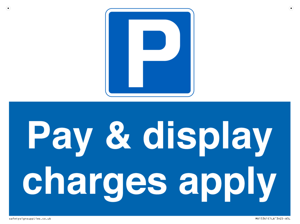 Pay & display charges apply Sign