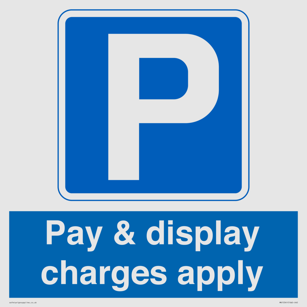 Pay & display charges apply Sign