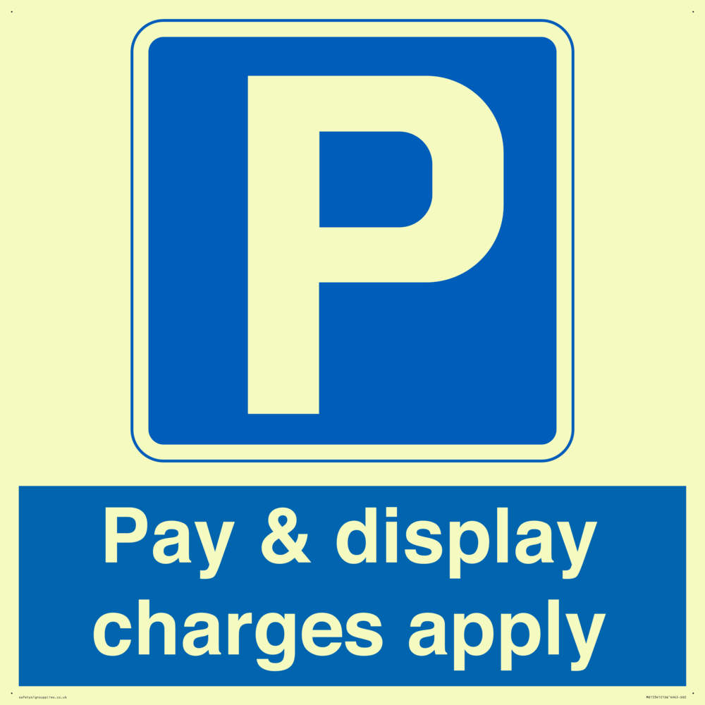 Pay & display charges apply Sign