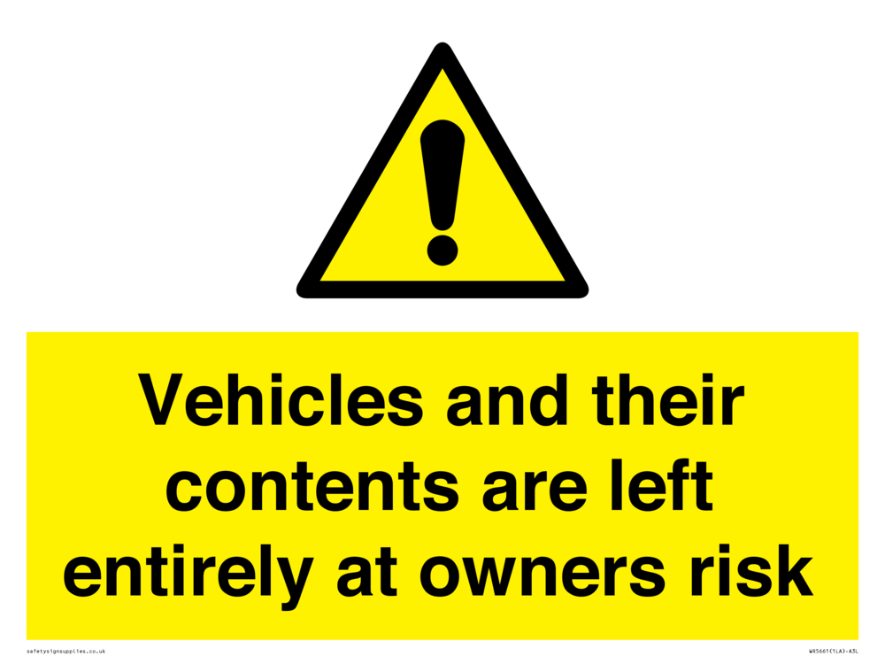 Sign Text: Vehicles and their contents are left entirely at owners risk