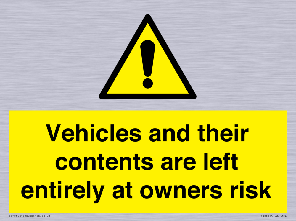 Sign Text: Vehicles and their contents are left entirely at owners risk