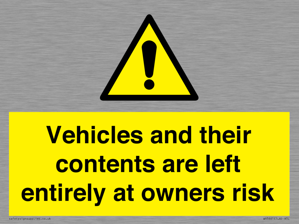 Sign Text: Vehicles and their contents are left entirely at owners risk