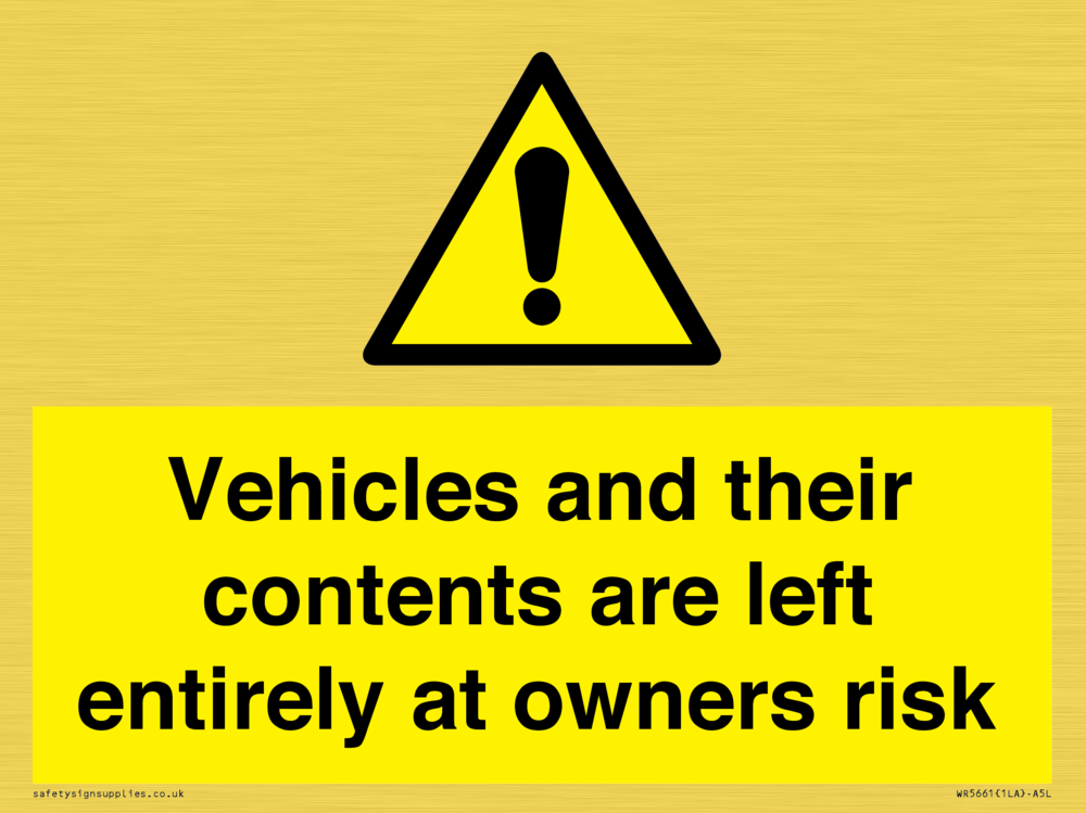 Sign Text: Vehicles and their contents are left entirely at owners risk