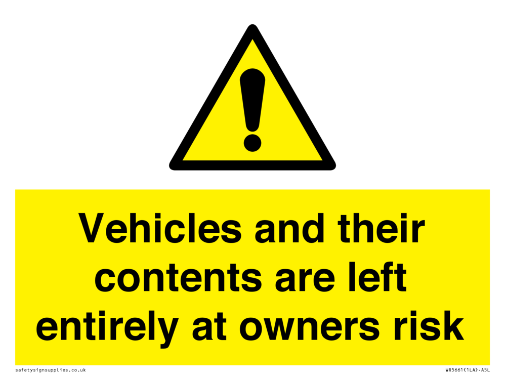 Sign Text: Vehicles and their contents are left entirely at owners risk