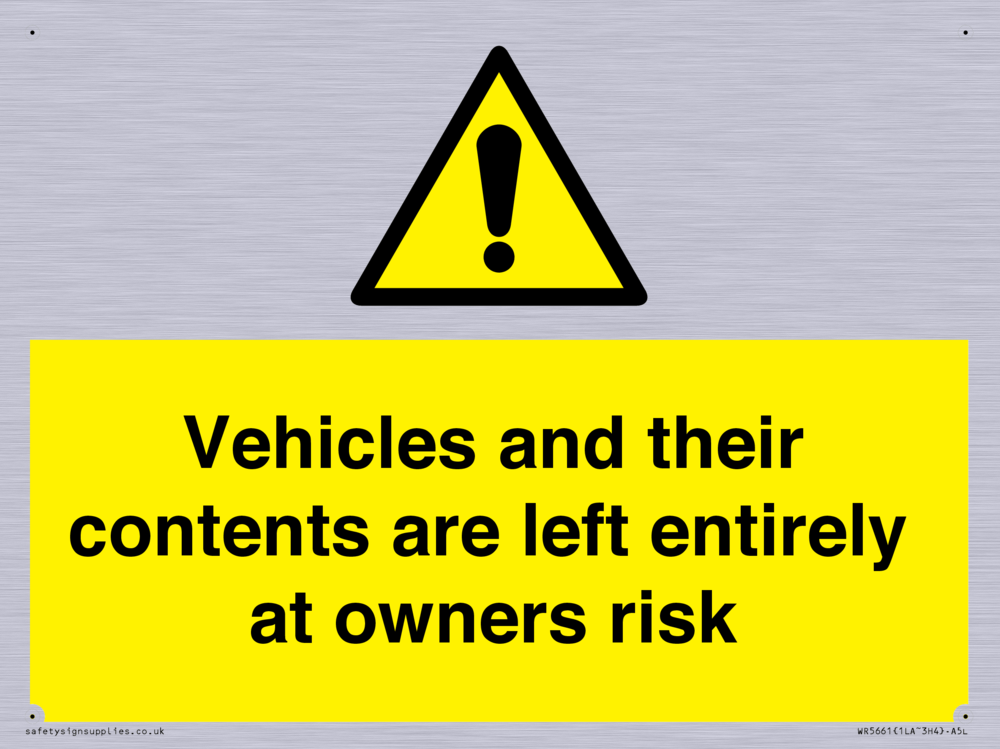 Sign Text: Vehicles and their contents are left entirely at owners risk